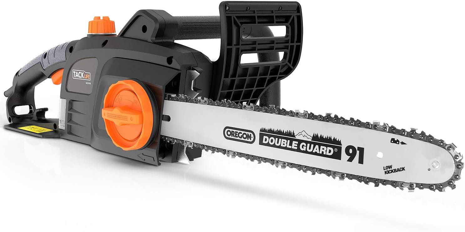 La Tronçonneuse TACKLIFE 1800W, Test équipée de chaîne et plateau Oregon de 40 cm, vitesse de chaîne 13.5 m/s, tension automatique, frein de chaîne et lubrification automatique – GCS11B